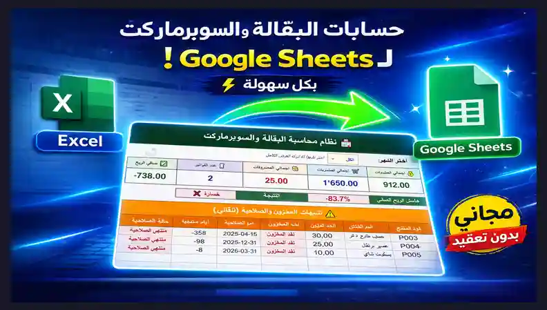 نظام محاسبة البقالة والسوبرماركت على Google Sheet